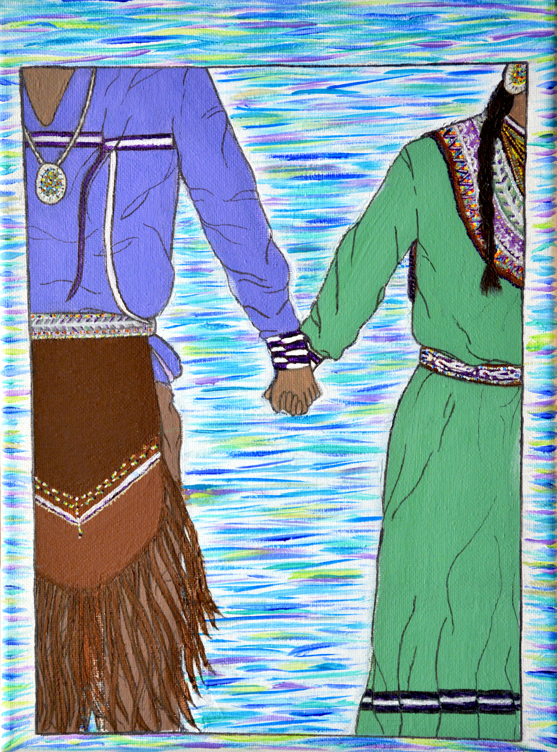 Opening on September 26th and continuing through 2021, The CBU Art Gallery presents an exhibition of visual work by young Indigenous artists from Eskasoni, Potlotek and the Six Nations of the Grand River Territory in Ontario. The exhibition is at once a celebration of emerging talent and the coming together of younger ‘cousins’ hosting their older cousins across Turtle Island, where the gallery space becomes a site of peace and friendship and a meeting ground for sharing expressions of experience, thoughts, ideas and values. The Two-Row Wampum (or Peace and Friendship Treaty), was made over 1,000 years ago between Indigenous nations.