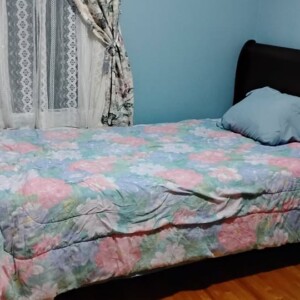 This bedroom is in a home that would be shared with 2 other women, 1 being the homeowner. This is a large house with a sunny, quiet bedroom that has a single bed, dresser & large closet in it.